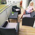 Das 85 m^2 große Schlummerkasten verfügt über einen Balkon, eine Terrasse und eine Sitzecke, ausgestattet mit einem Sofa und modernen Annehmlichkeiten wie einem Flachbildfernseher mit Satellitenkanälen und einem Fernsehen mit mehreren Kanälen. Rauchmelder gehören zu den Sicherheitseinrichtungen im Zimmer. Diese Unterkunft lädt Gäste in 1 Schlafzimmer ein. Es gibt 1 Badezimmer mit einer getrennten Toilette und einer Dusche und einem Wäschetrockner und Handtüchern.